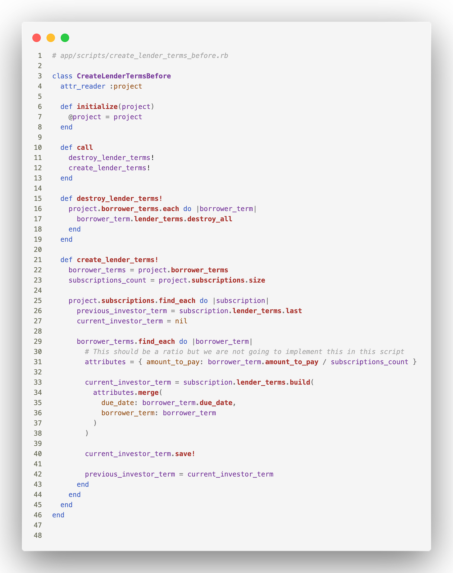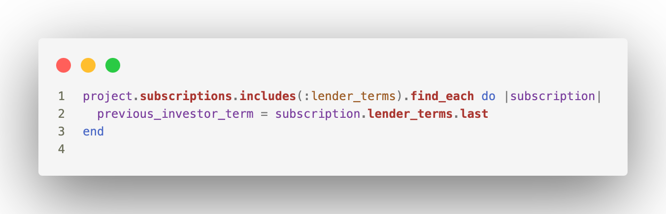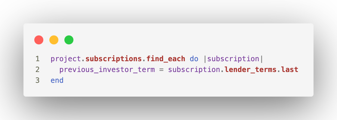 Mais ensuite, pour chaque souscription, on récupÚre la derniÚre échéance via subscription.lender_terms.last