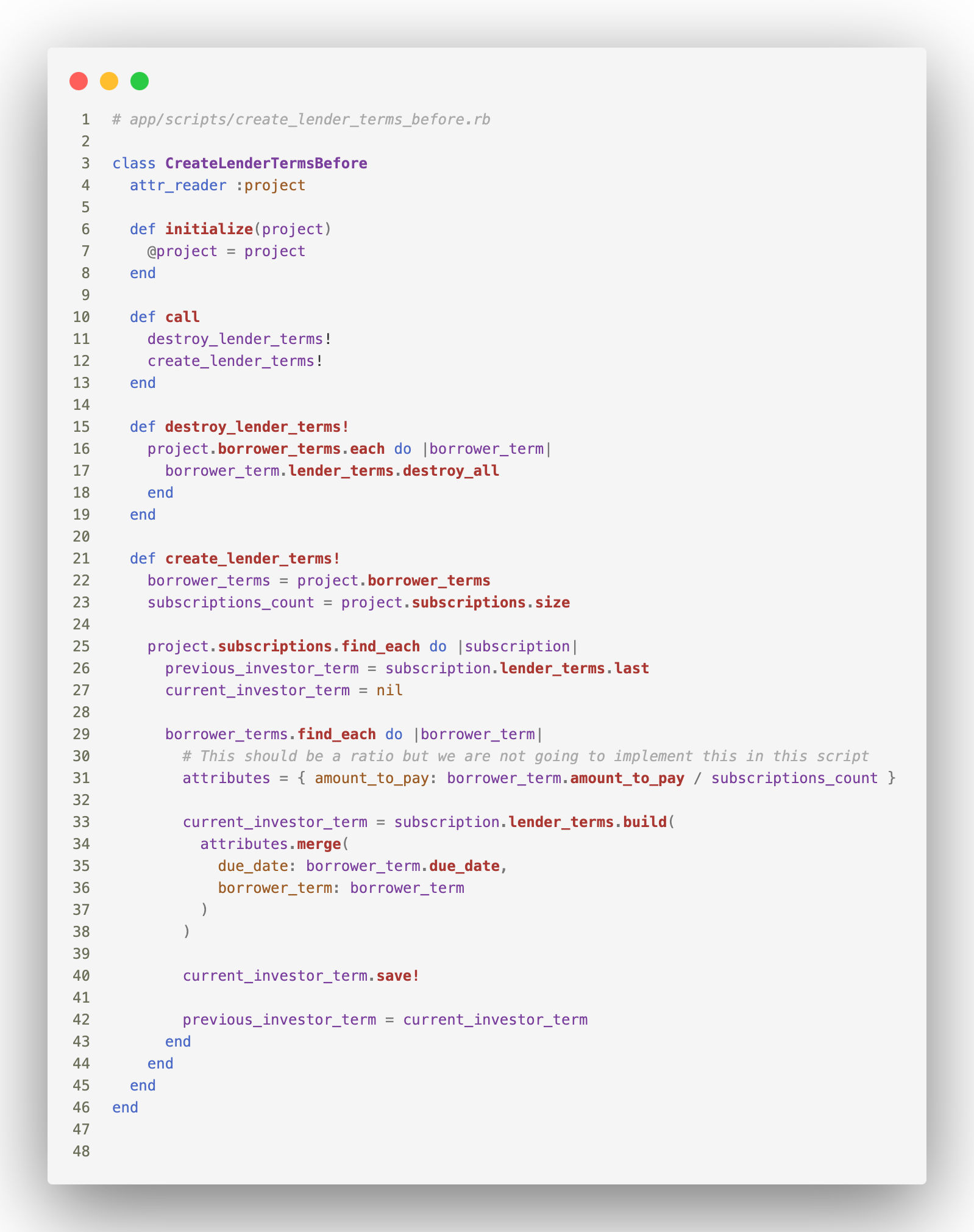 Notre systĂšme fonctionne ainsi : un projet est publiĂ©, des investisseurs y investissent et en retour, ils perçoivent un remboursement avec un taux dâintĂ©rĂȘt. Du crowdfunding globalement. Pour aider les administrateurs Ă organiser ces remboursements, nous devons gĂ©nĂ©rer un Ă©chĂ©ancier pour chaque investisseur, souvent Ă©talĂ© sur plusieurs mois, voire plusieurs annĂ©es.