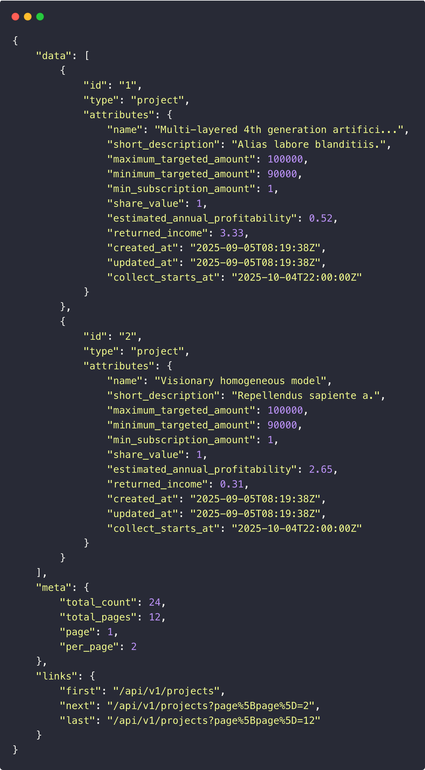 Voici un exemple d’un résultat d’une requête faite avec Postman sur l’endpoint http://localhost:3000/api/v1/projects (en changeant la pagination à 2)
