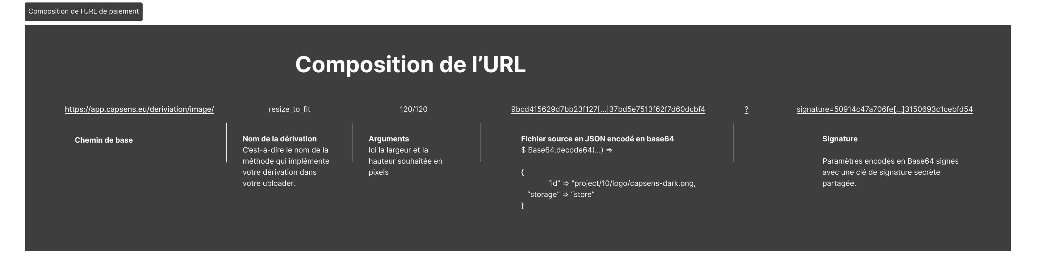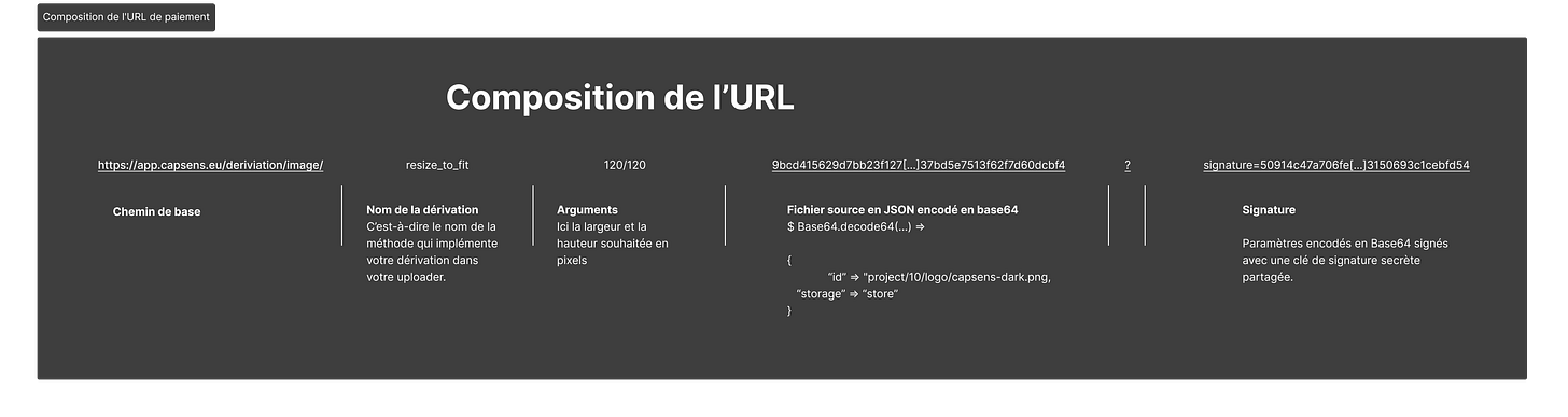 Ces versions optimisées de l'image ne seront crée qu'à la demande, c'est à dire la première fois qu'un utilisateur affichera une page qui contient cette version. Dés la première génération, la version générée sera uploadée sur AWS S3 (notre espace de stockage en ligne) et ainsi les prochains utilisateurs se verront servir via S3 directement l'image déjà générée. Dans tous les cas, la requête passe forcement par le serveur (https://mon-domaine/derivations/image/....), si la version existe déjà, on redirige sur le lien S3 de celle-ci, si elle n'existe pas, le serveur la génère puis la stocke puis redirige sur le lien S3.
